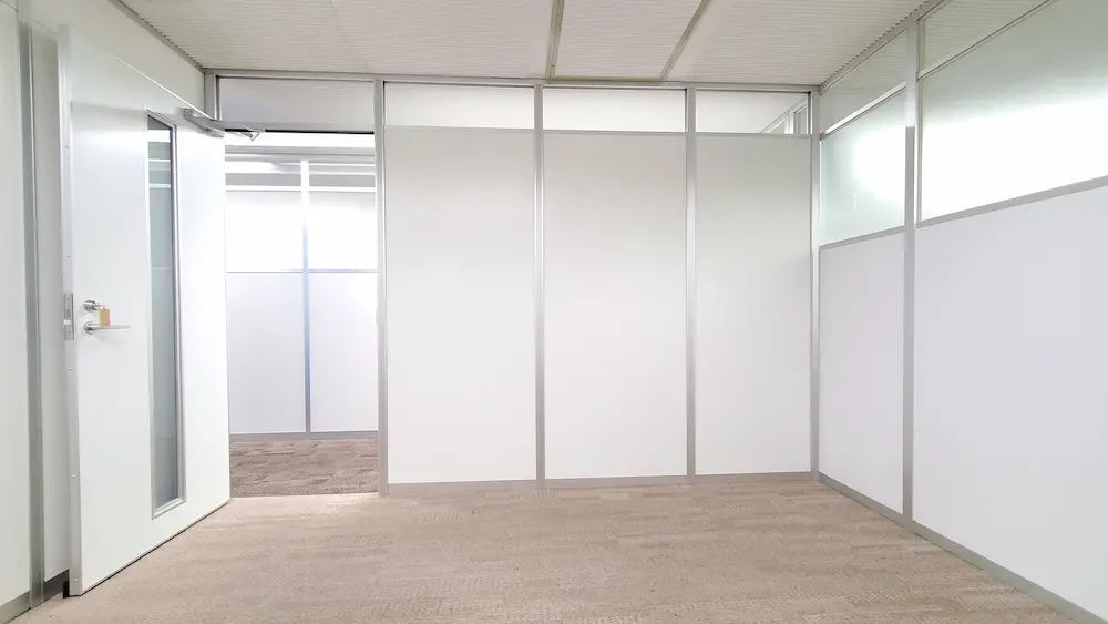軽量でありながら丈夫なアルミパーテーションは、コスト面でもリーズナブル。工期短縮と費用を抑えたいときにおすすめ。