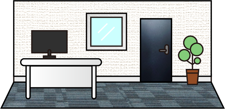 - じゃあ、会議(来客)スペースは入口から直接行ける場所において、執務室は会議室から遠いところに配置したらいいかな?