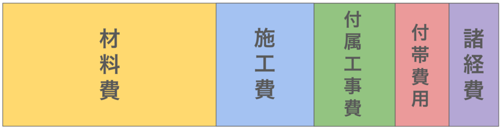 目安として、概ね6〜7割程度が材料費+取り付け費とお考えいただくと良いでしょう。逆に言えば、それ以外のコストが全体の3〜4割程度見込まれるということです。